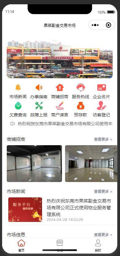 在線服務(wu)平臺(小程(cheng)序)是我公司通過大(da)量的(de)(de)數據分析與市場調研(yan),基于微信小程序(xu)研(yan)發的(de)(de),可(ke)以(yi)和電(dian)腦端物管(guan)(guan)王系統(tong)一體(ti)化管(guan)(guan)理(li),主要目的(de)(de)是為(wei)了(le)滿足(zu)管(guan)(guan)理(li)方管(guan)(guan)理(li)上的(de)(de)便利性(xing),如及時發布各類新(xin)聞通知、辦事(shi)指(zhi)南(nan)、便民電(dian)話、商鋪出租動態等等,同時滿足(zu)業(ye)主及時向管(guan)(guan)理(li)反饋訴(su)求,如在線報(bao)修、在線投(tou)訴(su)、在線繳費,查看合同信息和繳費記(ji)錄等等。